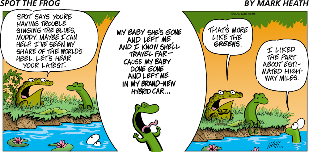 I'm a freelance cartoonist. My work has appeared in Reader's Digest, Harvard Business Review, American Scientist, Woman's World, and others. I'm also the creator of Spot the Frog, a comic strip you can find at Gocomics.com. View all posts by Mark Heath