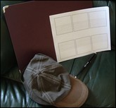 (I wrote the above in 2011 or so. Since then, I’ve replaced the pen with an Apple pencil, and paper for an iPad. I lost the hat, but I still use the desk. It’s probably around 90, in lap desk years.)